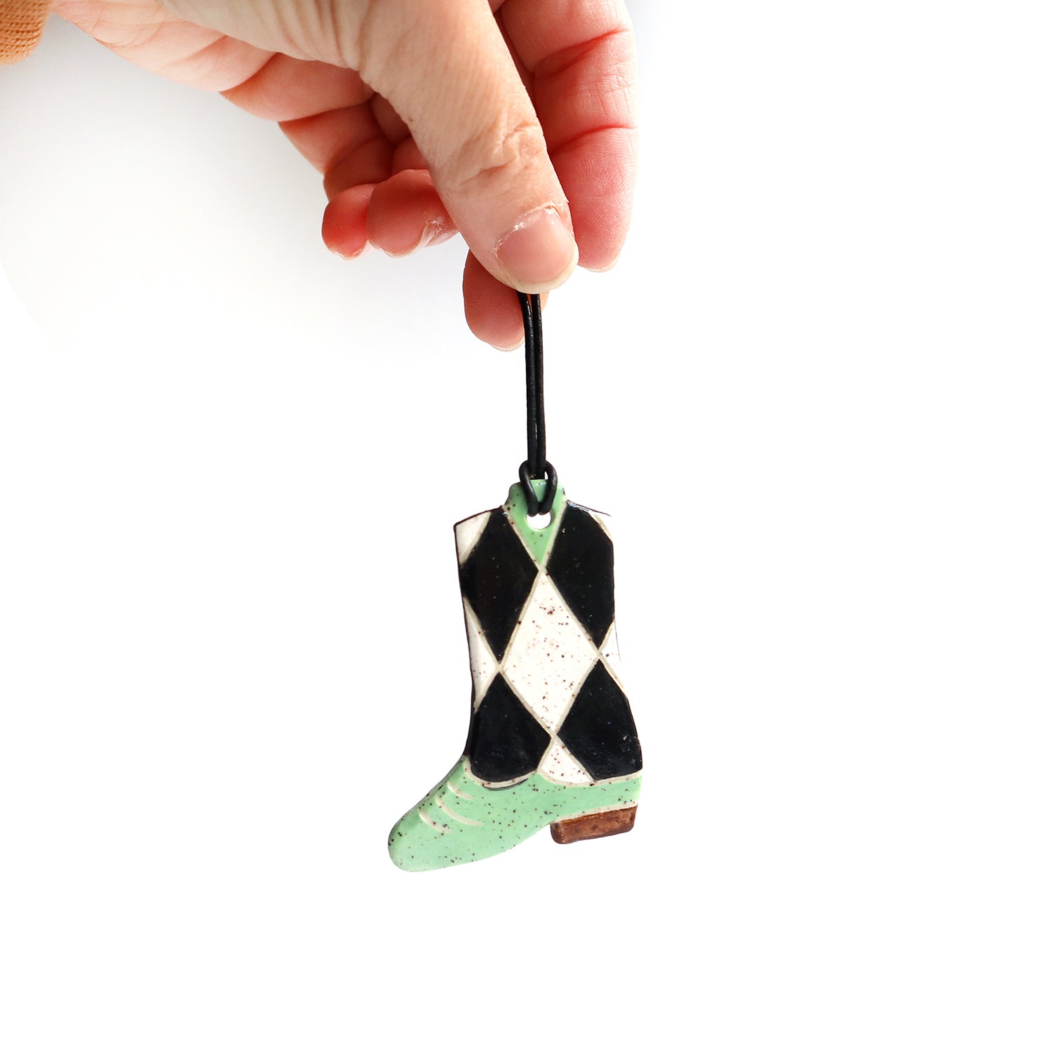 Cowboy Boot w/Checkers Ornament/Wall Hanging