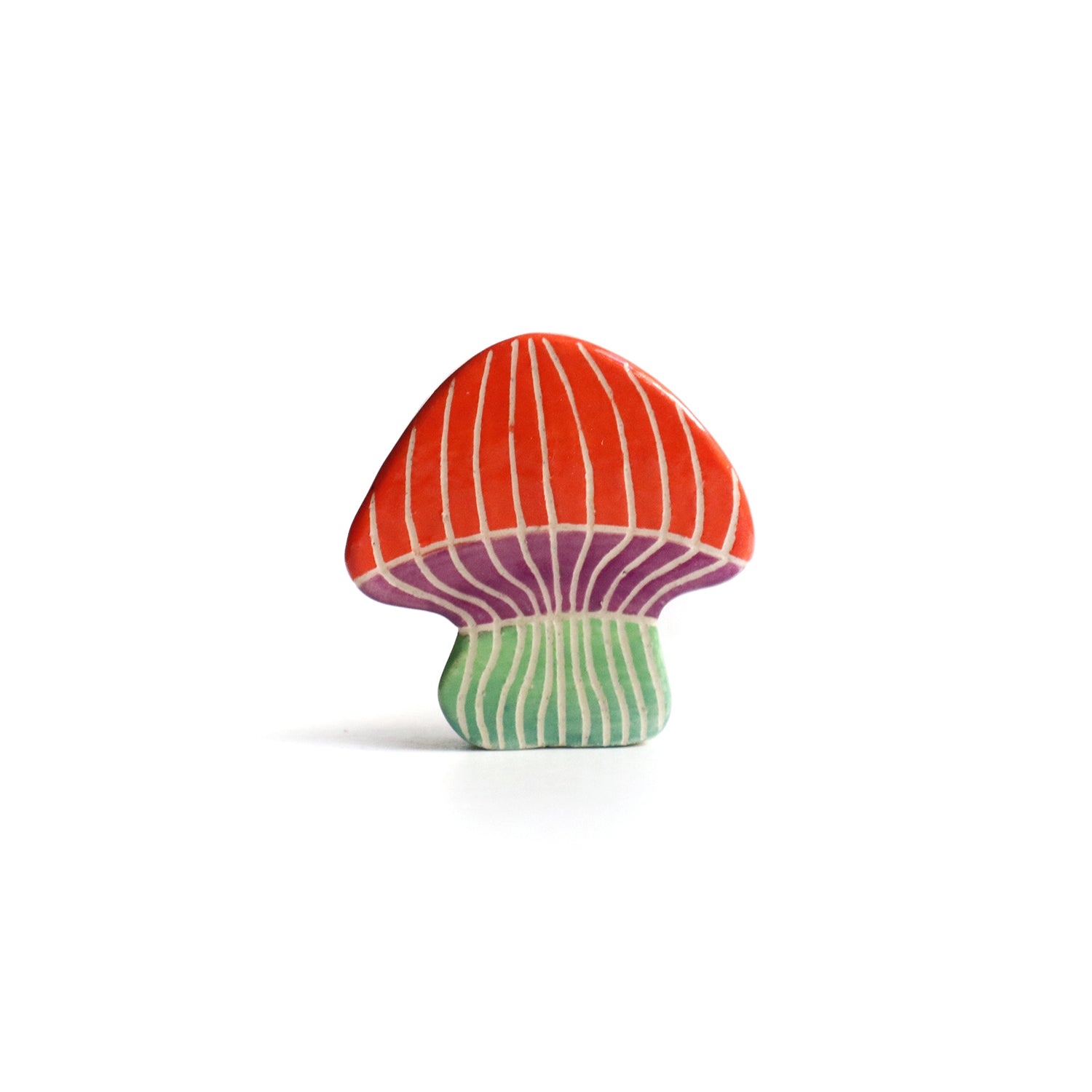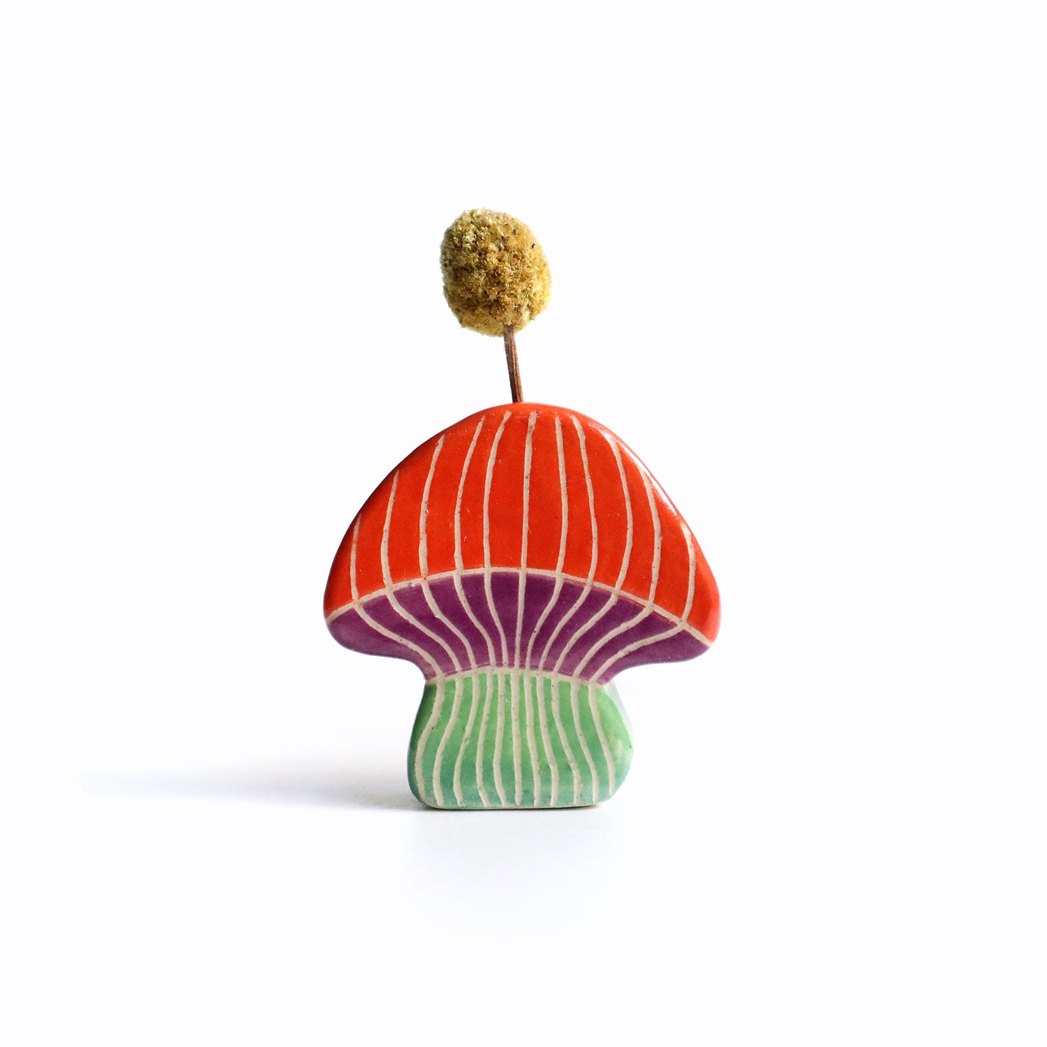Teeny tiny ceramic bud vase. Measures approx. .5" deep and 2.5" tall and 2.5" wide. Hand painted under glaze and carved. Clear glaze. Hand washing recommended.